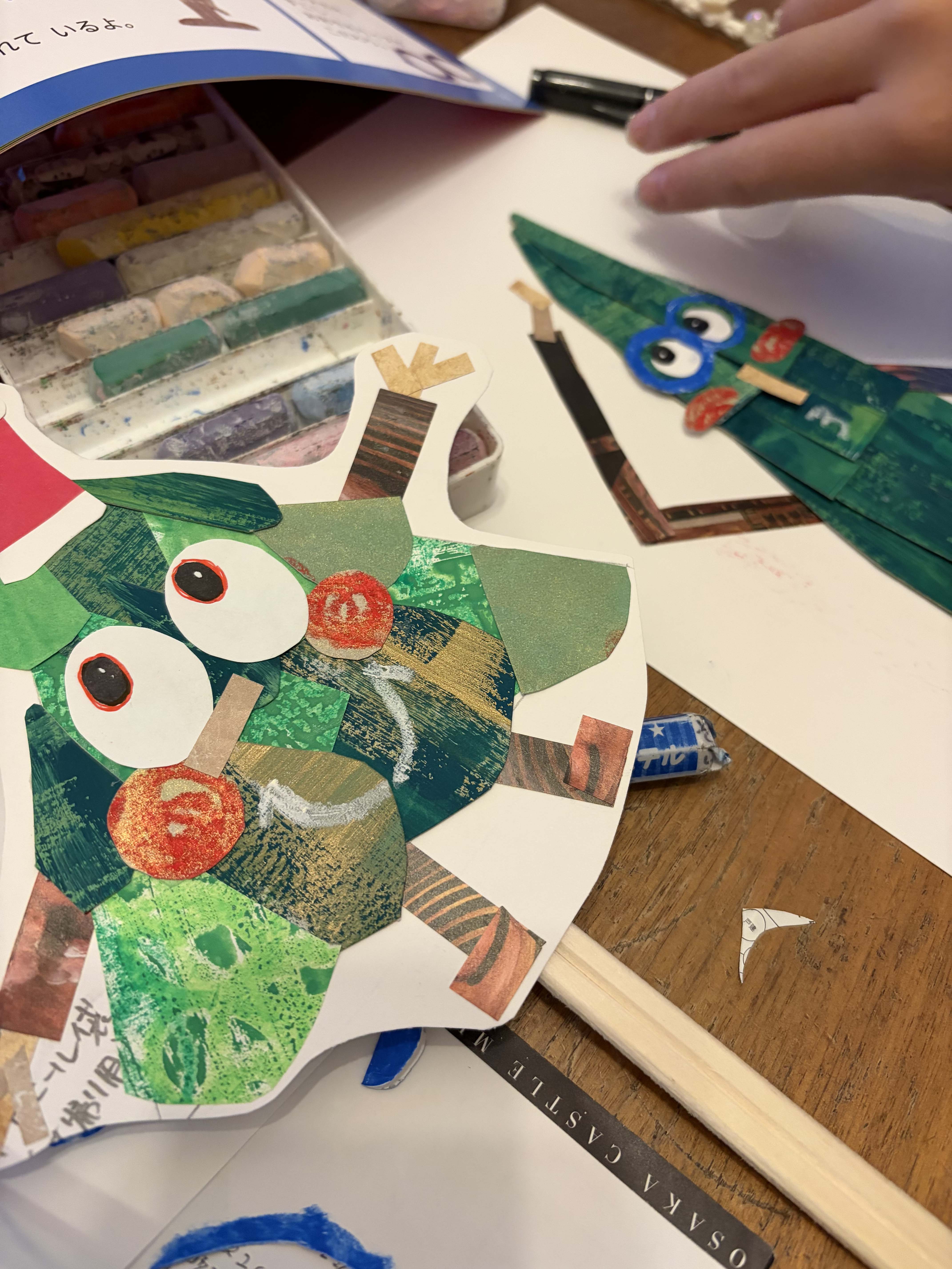 ワークショップで子どもたちの自由な創造力に触れて 写真はワークショップの実験として長女にすぎちゃんを作ってもらっている様‥