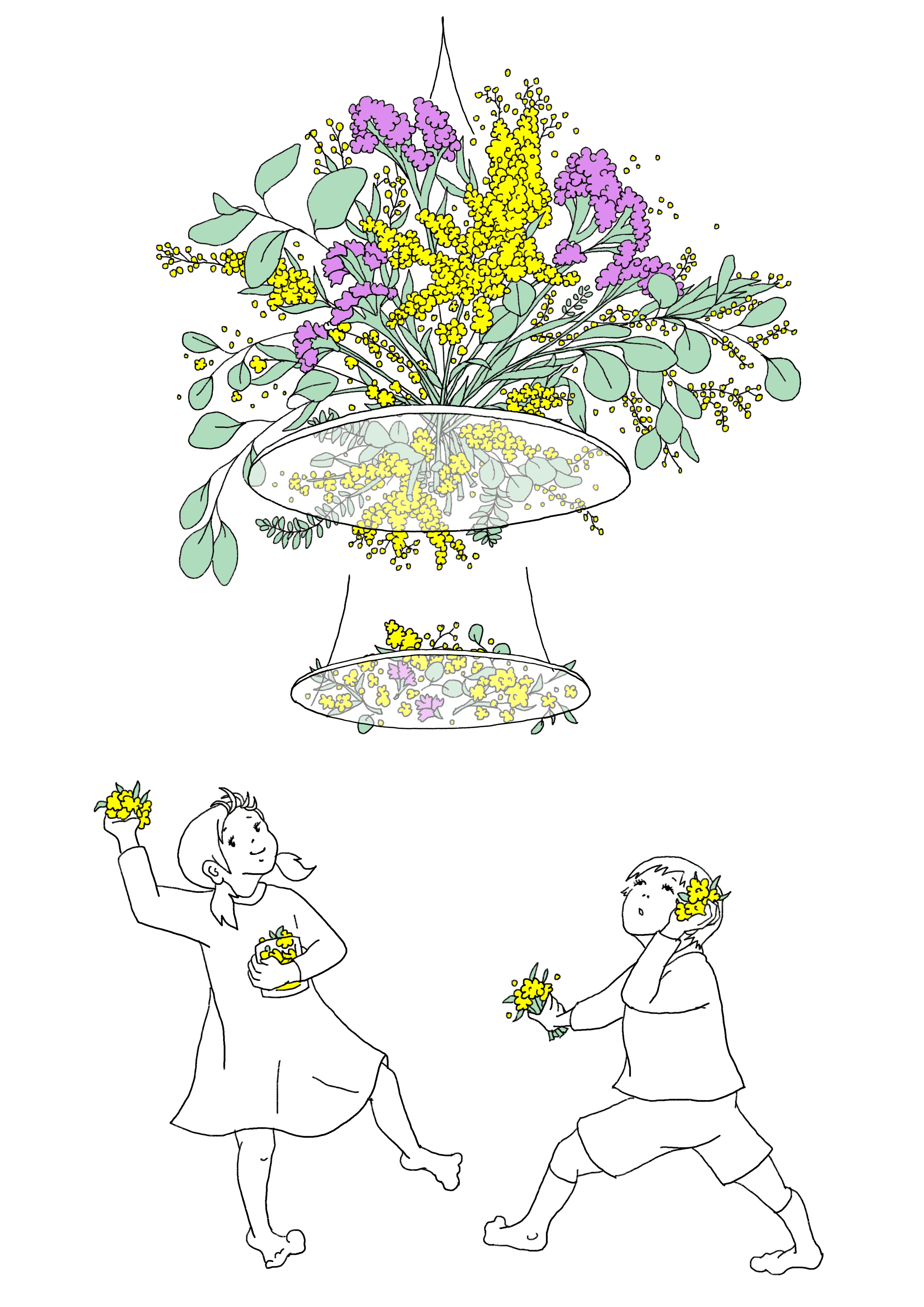 全身で感情を表現する子供のイラスト・子供と女性を絡める絵・花を入れたデザインを描くのが好き。